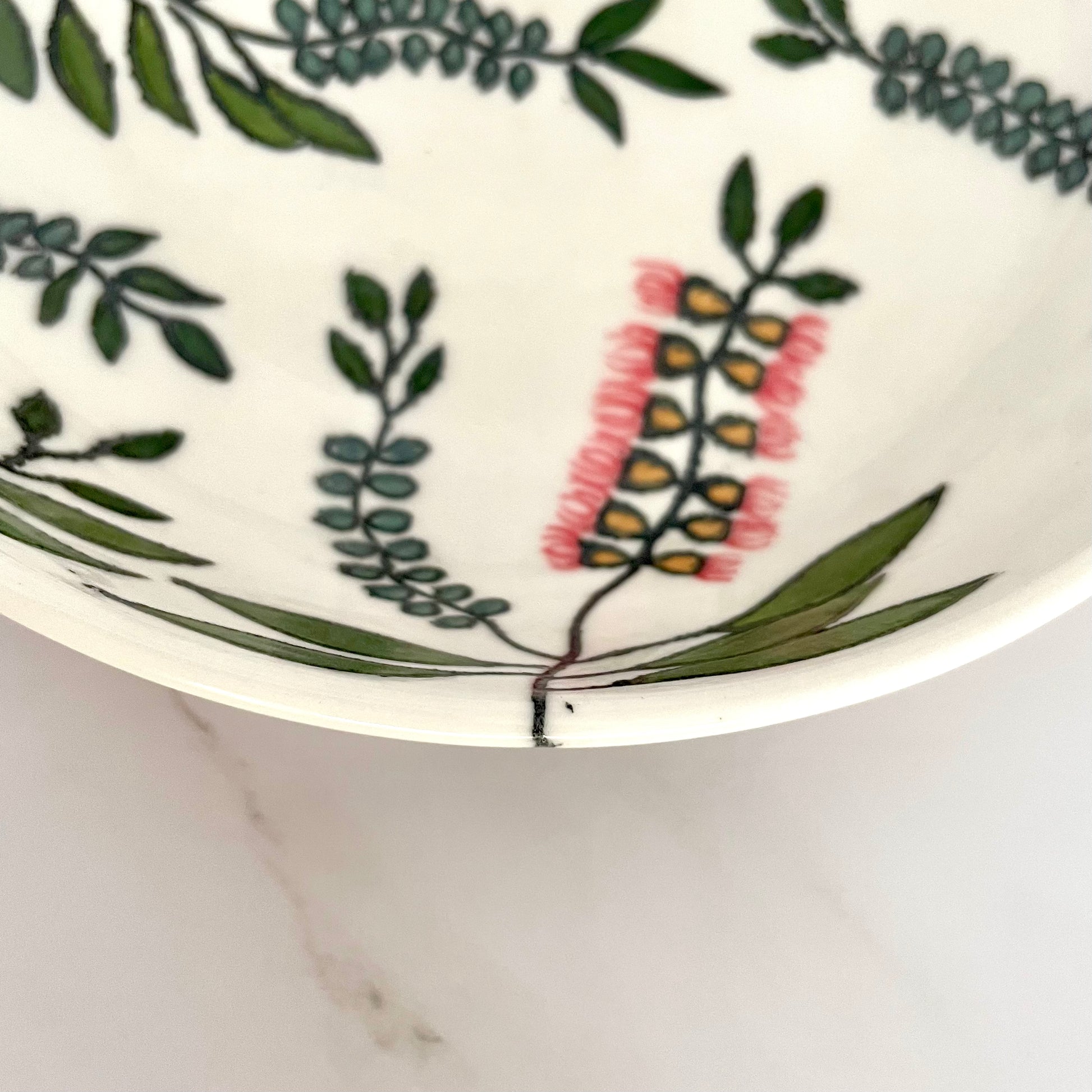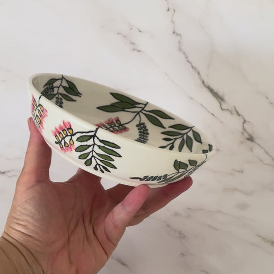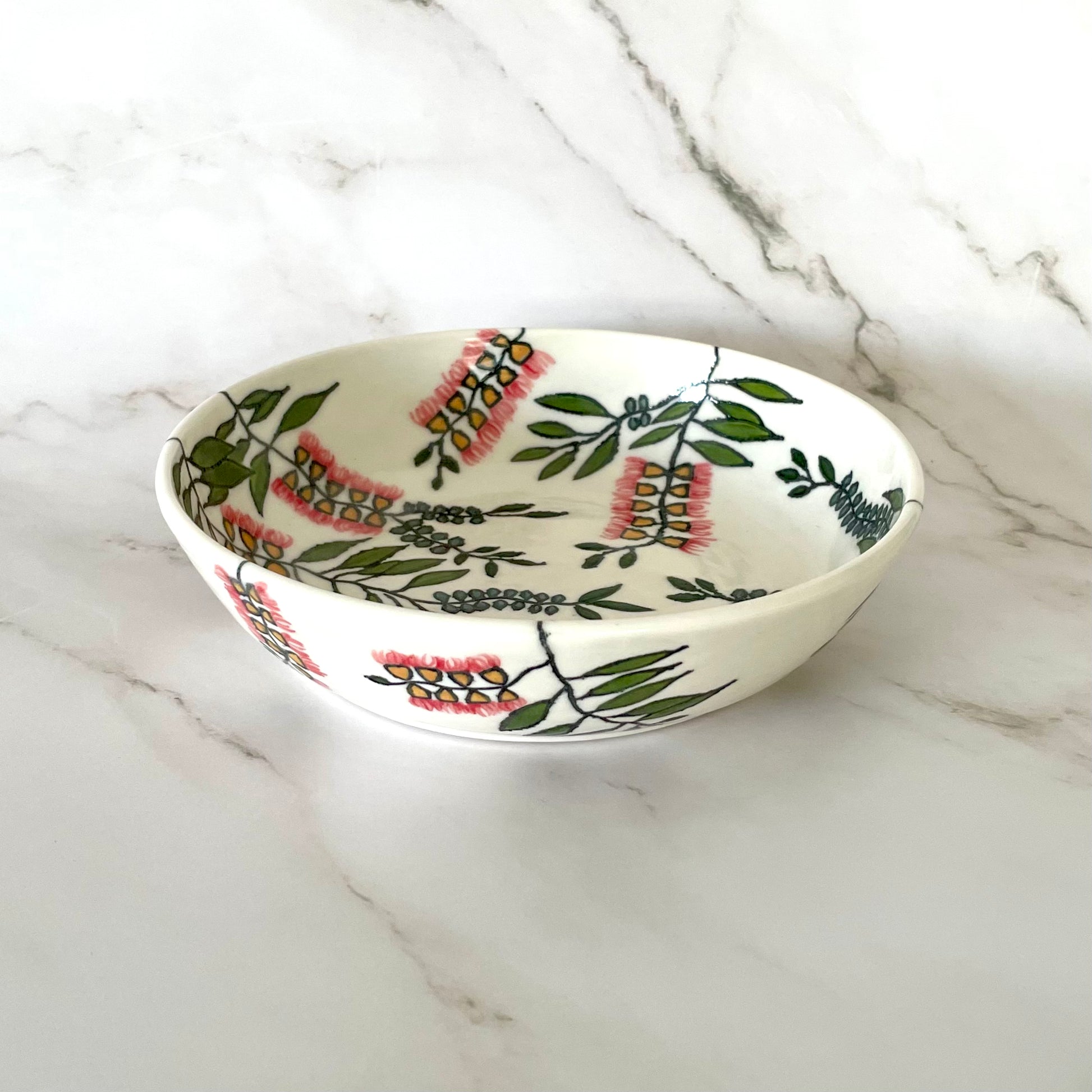 Small porcelain coupe bowl with native Australian bottlebrush